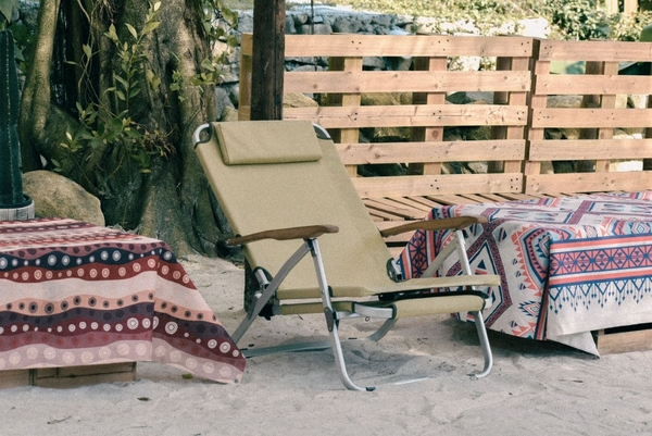 もちろん焚火の時もok、ポリエステル製座面ですが、焚火の火の粉でも穴が開きにくい素材になっております。※防炎加工や防炎素材では御座いません。