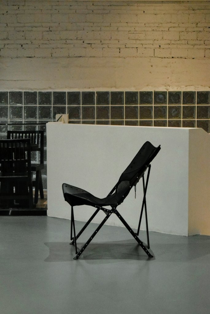 100年以上前の木製椅子を現代の素材と斬新な形で再現し、古い椅子に新しい命を吹き込む折畳椅子。
